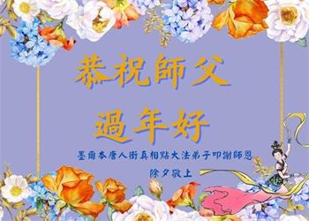 在中国新年到来之际,海外各国大法弟子们恭祝师尊新年好!大法弟子们会坚修大法,多讲真相,救度各阶层世人。