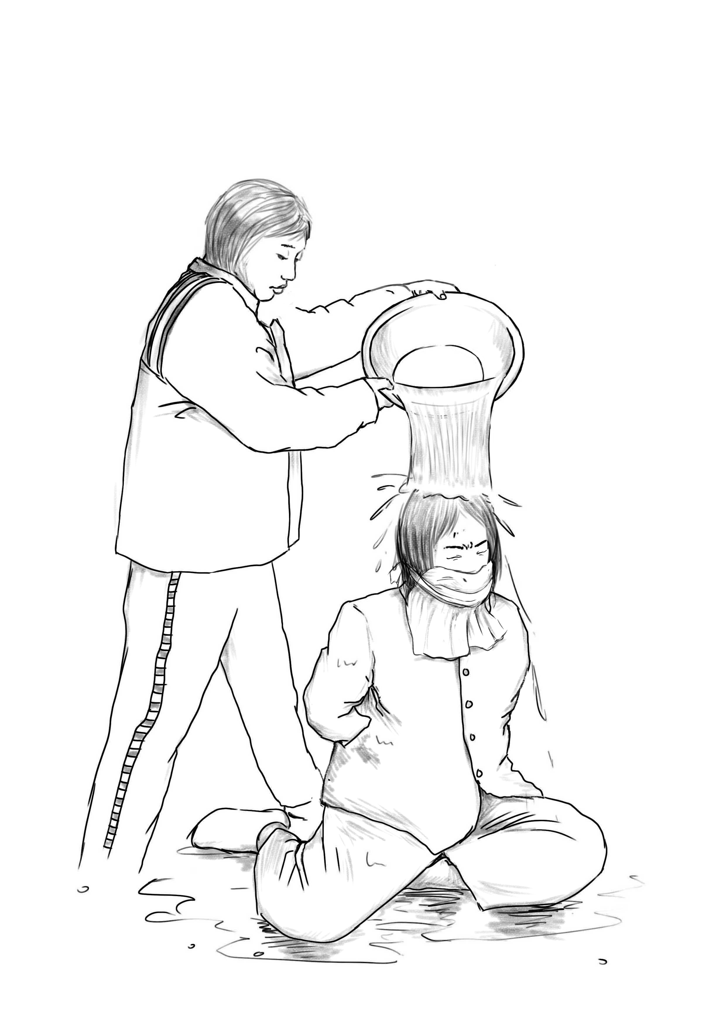 ![]() 酷刑示意图三:冬天全身灌凉水、冷冻。 |