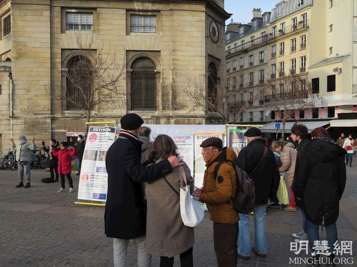 八十一岁的哲拉尔(Gérard),住在夏特蕾附近。头一天他就在蓬皮杜中心遇见了征签的义工,因为没有时间而匆匆离开。这天又见到了法轮功,他说很长时间没有遇到这么重要的征签(反迫害)活动。法轮功学员在中国遭受迫害,他认为:“二零二二年,首领们都没有意识到这个问题,这是个悲剧。”