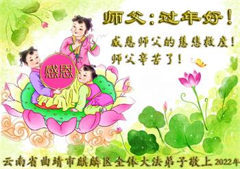 师尊新年好!师尊辛苦了!大陆大法弟子敬拜师尊,问候师尊,想念师尊,请师尊放心,弟子们一定不辱使命,不负师恩!