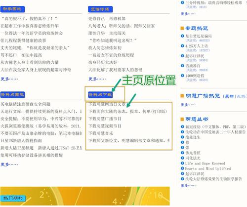 3.下载明慧广播节目、视频、音乐、经文、编辑部文章、评语文章,见下图: