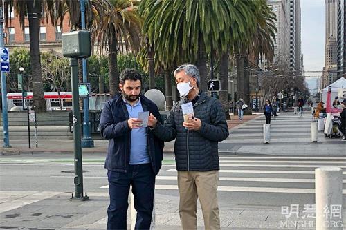 【明慧网二零二二年二月八日】旧金山渡轮大厦(San Francisco Ferry Building)是美国旧金山的一个穿越旧金山湾的轮渡站和购物中心,位于内河码头(The Embarcadero)与主干道市场街的交汇处。每逢周六,在渡轮大厦旁边和对面还开有农民市场(Farmers Market)和自由市场,人来人往,好不热闹。