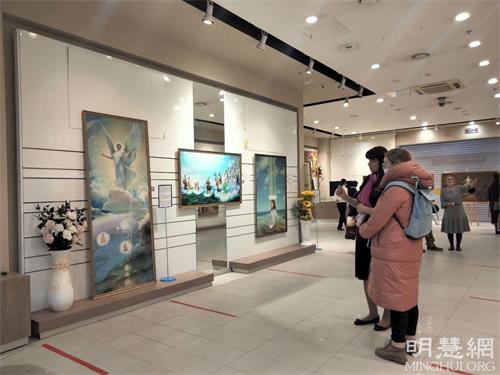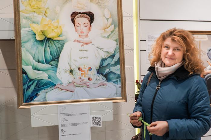 娜杰日达带她的孙子蒂莫菲前来观看画展,她说:“我们一进入展览,这个世界的所有问题都消失了。人们可以感受到和平、崇高和平静,仿佛和谐的音乐在我的灵魂中响起。这些画作在展览中创造了一种正面的气氛,它们散发着光亮和宁静的气息。”她表示,能感受到“真、善、忍”的能量,她说:“真的很喜欢。”