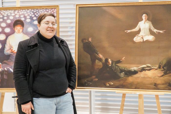 奥尔加是一位裁缝,她说:“所有的画作都非常生动活泼。展览中的画作都会呼吸,它们是如此光明。即使在讲述悲痛的图片中,也表达了希望、真理会赢。”