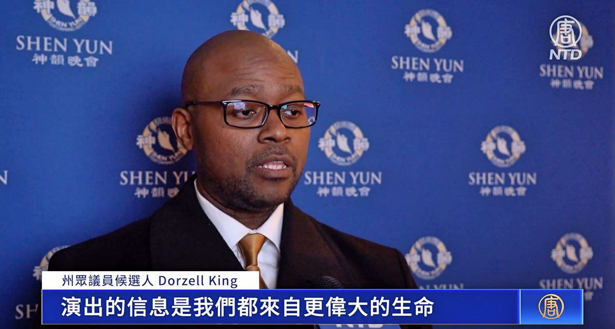 ![]() 图9:三月十八日晚,内华达州州众议员候选人多泽尔·金(Dorzell King)观赏了神韵新纪元艺术团在内华达州雷诺先锋艺术中心的首场演出。他表示神韵的信息引起了他的共鸣。(新唐人电视截图) |