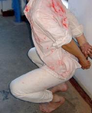 ◎张宪,男,廊坊市香河县人。二零零五年十月二十八日,张宪被绑架、非法劳教两年,警察把他单独关在一个屋里,一普教犯人在屋里二十四小时监控,几个帮凶轮番围攻,夜里十二点到早晨六点允许休息,其余时间,被逼在小凳子上面墙而坐。同年十二月十四日夜,张力、董新国带领一帮普教,把张宪弄到隔壁屋里,逼他盘腿两小时,他要把腿拿下来,董新国上来一拳就打到他嘴上,在场恶人都扑上来,有的挥拳向他嘴上、脸上猛击,张宪的嘴被打的鲜血直流,几个人上来硬把他腿呈大盘状搬上,人被移到两床架中间,一边一个人把两个胳膊别在铁床横杆上用力压着固定,身后站一个人控制着头,身前一个人坐在沙发上,两脚狠劲踩在他腿上。