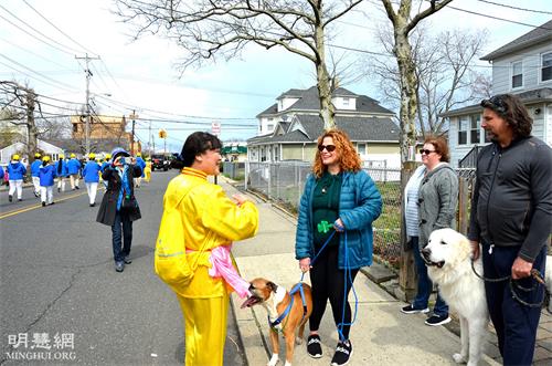 ![]() 图1:三月二十六日,新泽西州海滨小城肯斯堡(Keansburgh)举行了年度圣派翠克节(St. Patrick’s Day)游行。法轮功学员的腰鼓队、炼功队和莲花队是唯一的华人团体。 |