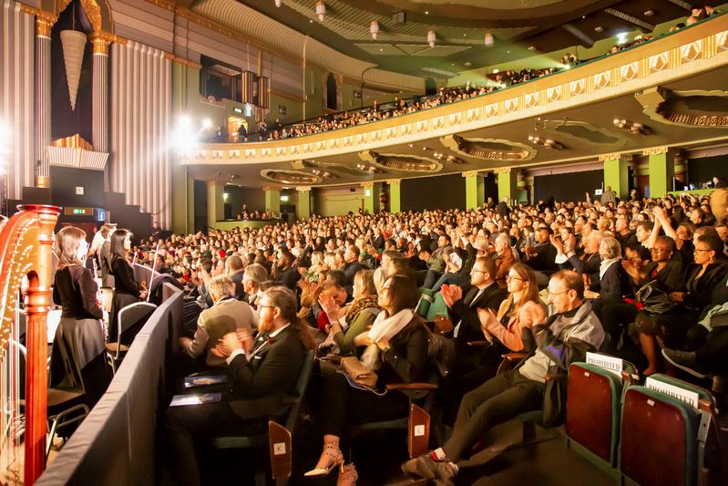'图1:二零二二年二月二十六日至三月六日,神韵世界艺术团在英国伦敦汉默史密斯阿波罗剧院(London Eventim Apollo)上演的十场演出,吸引不少贵族名流慕名前来观赏,周末场连续爆满,观众盛赞。图为三月五日演出大爆满的盛况。(大纪元)'