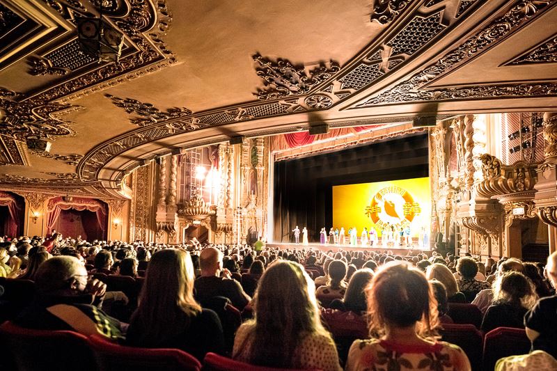 图5:二零二二年三月二日至六日,神韵北美艺术团在亚利桑那州凤凰城奥芬剧院(Phoenix Orpheum)的六场演出,场场爆满。图为三月四日晚演出的谢幕照。(大纪元)