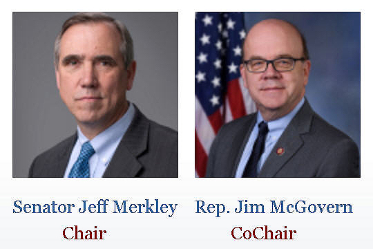 图:美国国会及行政当局中国委员会主席、联邦参议员默克利(左),和委员会联合主席、国会众议员吉姆·麦克高文