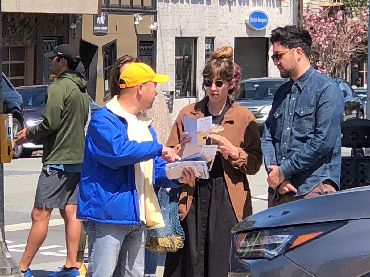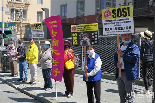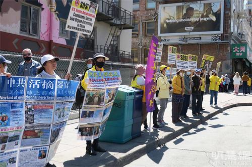 上午十一点,来自湾区各地的部分法轮功学员,齐聚在旧金山市区和中国城等五个地点,在主要街道上拉开横幅,向民众讲真相,格外引人注目,有些民众驻足了解真相后,纷纷表示支持。