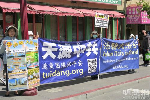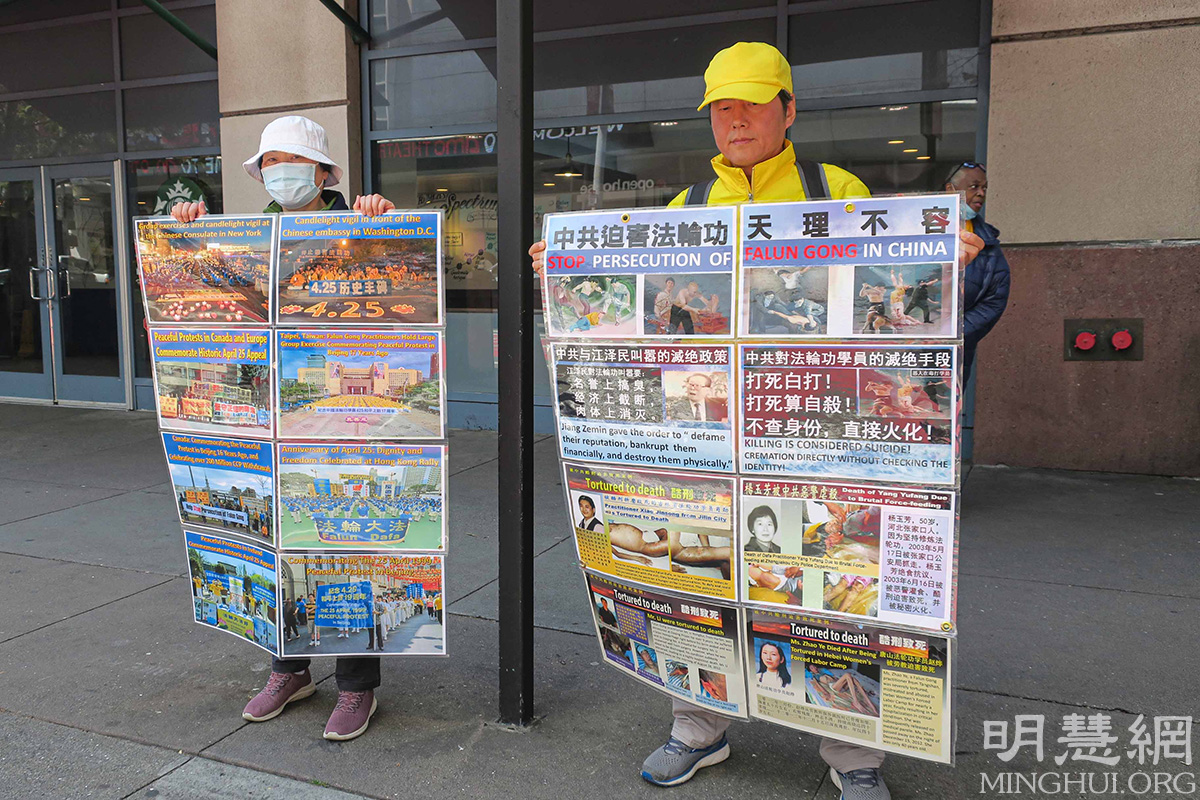 【明慧网二零二二年四月二十四日】(明慧旧金山记者站报道)二零二二年四月二十三日,美国旧金山湾区的部分法轮功学员为纪念“四‧二五”万人和平上访二十三周年,在旧金山举行活动,向人们讲述法轮功真相。同时也谴责中共对法轮功修炼者长达二十三年的残酷迫害,并呼吁全世界正义力量共同制止中共对法轮功的迫害。