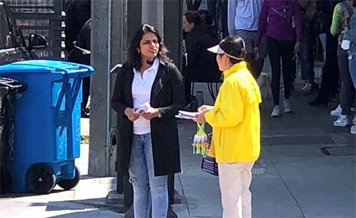 旧金山居民亚历克西斯•西蒙森(Alexis Simonson )是一名彩妆师,经常看到法轮功学员在旧金山的活动已经好几年,当她看到揭露中共活摘法轮功学员器官的横幅,引起她的注意。西蒙森表示,“虽然经常看到法轮功反迫害活动,但是不太了解什么是法轮功。当我看到揭露中共活摘法轮功学员器官的横幅时,得知法轮功学员是一群修炼者。天啊,到底发生了什么事,他们(中共)的行为实在太恐怖了,我认为应该要让更多人知道这件事,这也让我们想多了解什么是法轮功。”