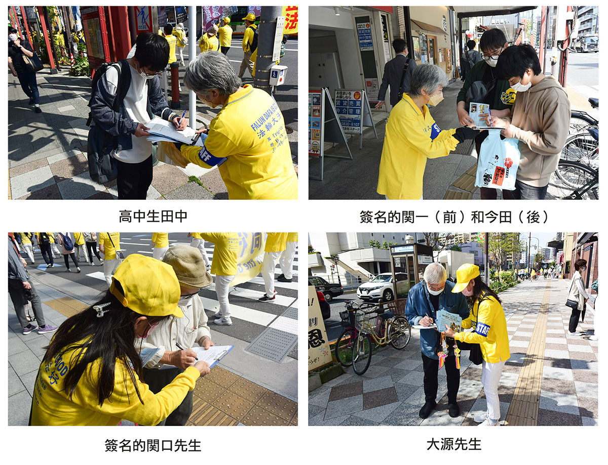 高中生田中在听完迫害真相后表示,“这种恶行应该被制止,所以我要签名支持。”关口先生在签名后说:“加油。”