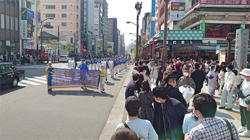 四月的东京正值温暖的仲春,游人如织,当看到法轮功学员的游行队伍时,人们纷纷驻足观看。有一位日本女性表示,对法轮功很感兴趣,希望能尽快学炼。也有不少日本人了解真相后签名支持法轮功学员反迫害。