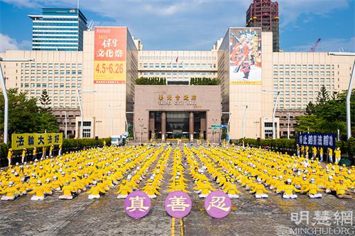 ![]() 图1~3:法轮功学员齐聚台北市政府广场前,举办纪念“四·二五”万人和平上访二十三周年。图为法轮功学员集体大炼功。 |