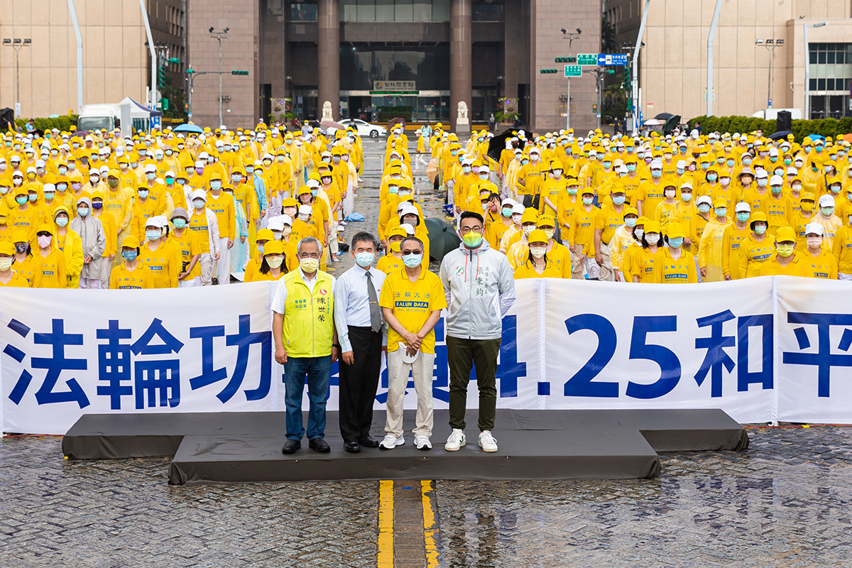 基隆市议员张秉钧议员说道:“大家也知道,刚刚雨下的相当相当的大,但就因为在场所有法轮功成员的信念与你们的坚持,感动了上天,让雨都停了!”