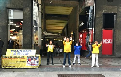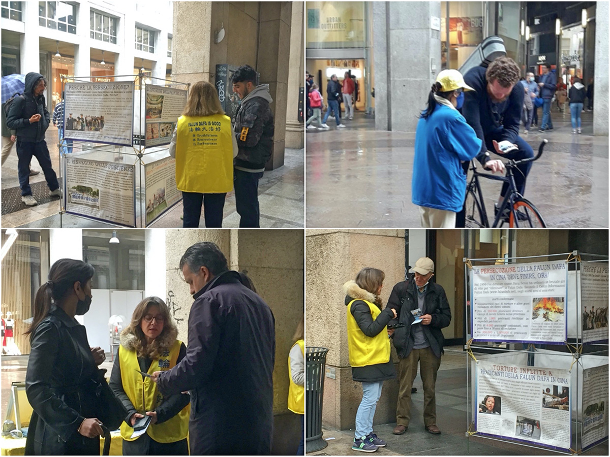 一位米兰本地的女士看了展板后,表示不敢相信当今会有这样严酷的迫害发生,她想要了解更多。最后她感谢学员告诉她真相,并说自己会去炼功点了解功法。
