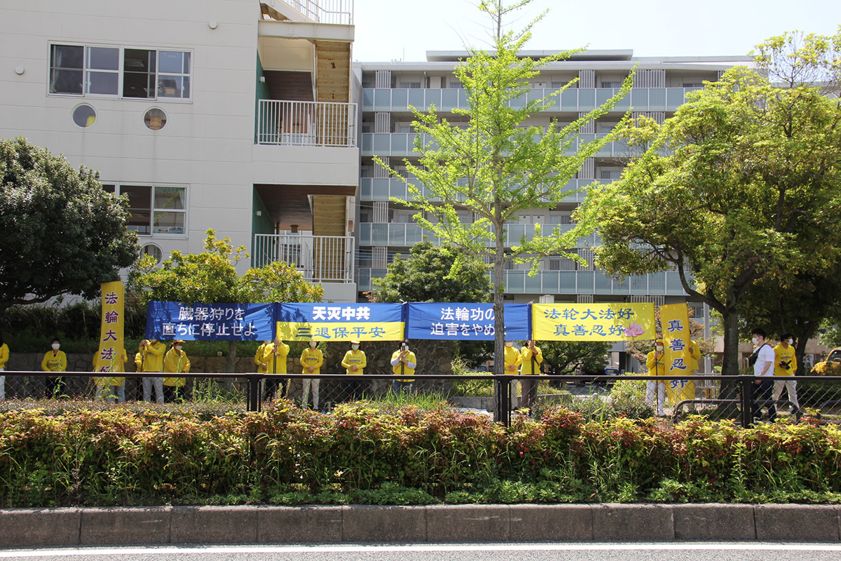 ![]() 图1:二零二二年四月二十五日,日本福冈地区法轮功学员在福冈中领馆前,举办“四·二五”和平上访二十三周年纪念活动 |