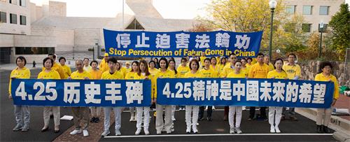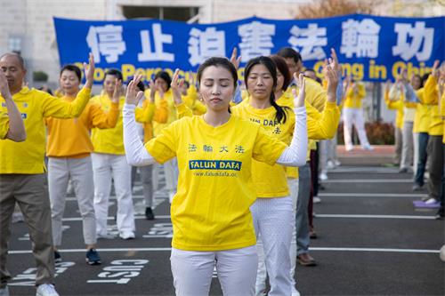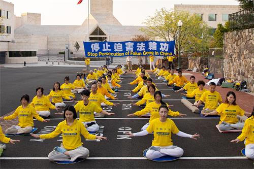 ![]() 图3~5:二零二二年四月二十三日傍晚,华盛顿地区部分法轮功学员在中共驻美大使馆前集体炼功,和平请愿。 |