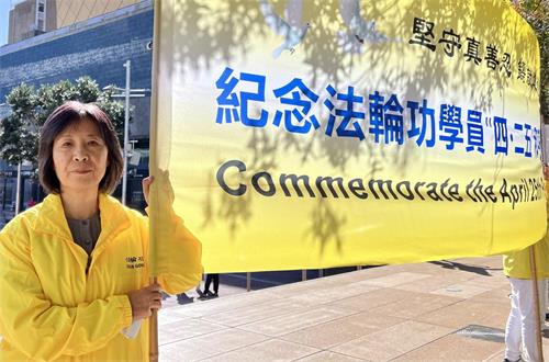 ![]() 图1~3:二零二二年四月二十五日,法轮功学员在奥克兰市中领馆前炼功。 |