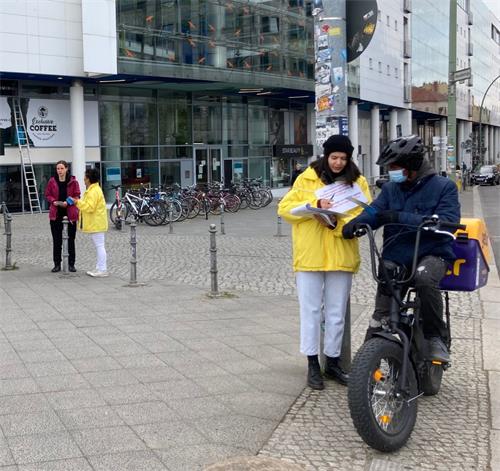![]() 图1:二零二二年四月二十五日,德国法轮功学员在首都柏林中使馆对面举办活动,纪念“四·二五”和平上访二十三周年。 |