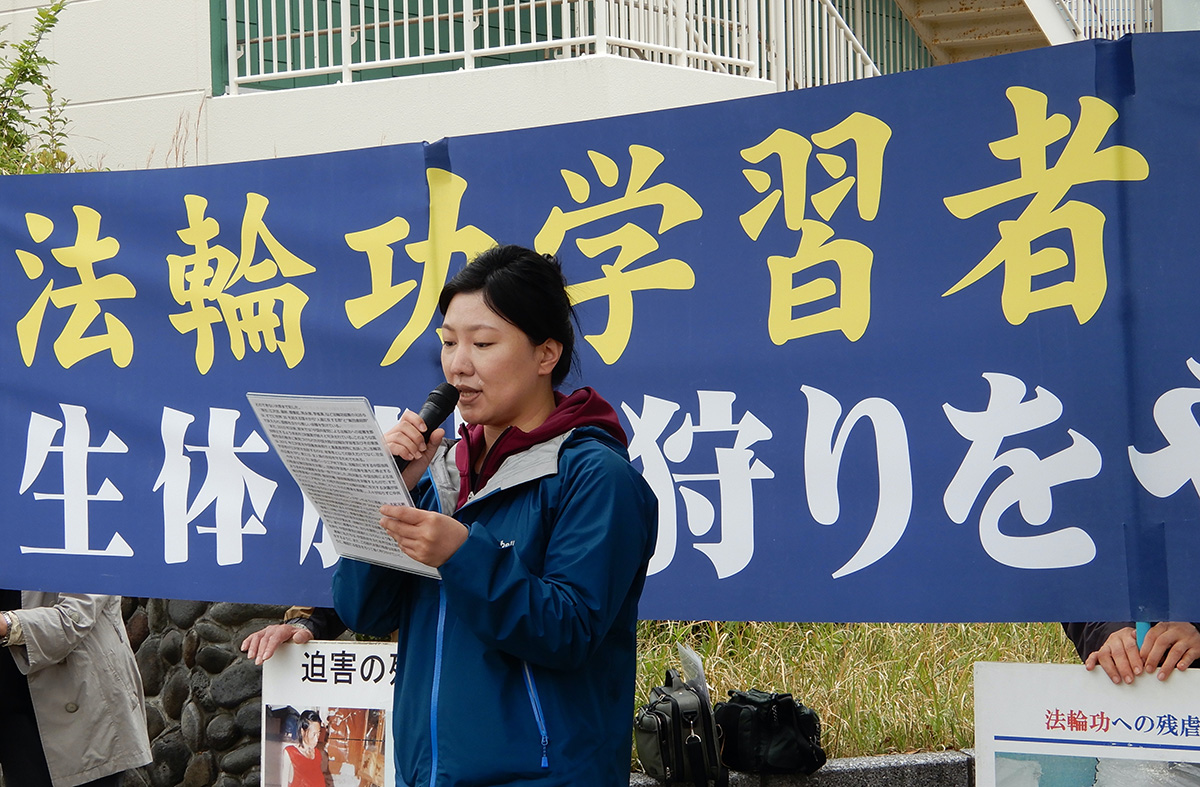 在日本工作的越南法轮功学员田先生(Mr.Tien)说:“今天是我第一次到名古屋中领馆前参加活动,纪念‘四·二五’。我要求中共立即停止对法轮功学员的迫害,立即停止活摘法轮功学员的器官。”