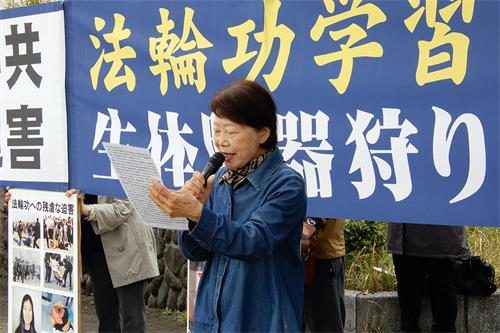 在日本工作的越南法轮功学员田先生(Mr.Tien)说:“今天是我第一次到名古屋中领馆前参加活动,纪念‘四·二五’。我要求中共立即停止对法轮功学员的迫害,立即停止活摘法轮功学员的器官。”