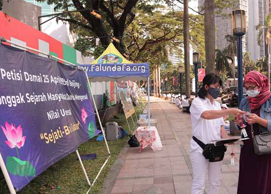 四月二十三日,雅加达法轮功学员在美加古宁安的中使馆前,泗水法轮功学员在中领事馆对面,都同时举办了和平请愿和烛光守夜活动。