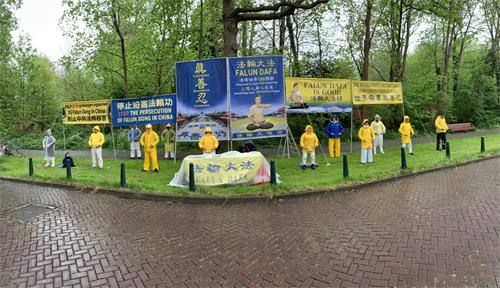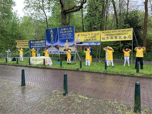 【明慧网二零二二年四月三十日】为纪念“四·二五”万名法轮功学员到北京和平请愿二十三周年,二零二二年四月二十五日,荷兰法轮功学员来到位于海牙的中使馆前,举行抗议活动,呼吁停止迫害法轮功。