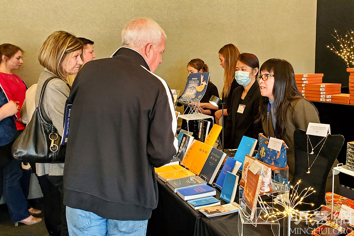 据在礼品柜台工作的罗女士介绍,有很多观众来询问这是什么书?罗女士告诉他们:“这是本修炼的书,法轮功的原则是真、善、忍。修炼法轮功可以让身心受益,尤其是现在中共病毒(武汉肺炎)大流行期间,可以帮助人们增强免疫力,抵御病毒的侵蚀。他们听了很高兴、很认同,并购买了《转法轮》。”