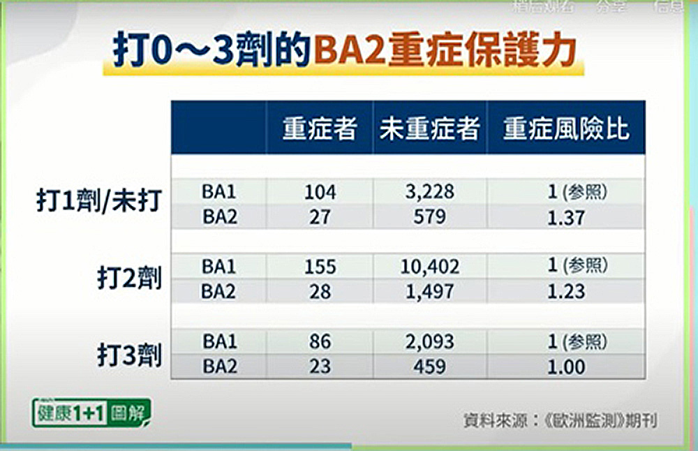 来自《欧洲监测》期刊表明,在丹麦的监测数据显示,打0~3剂疫苗,对奥密克戎BA2导致的重症,疫苗的防护未见实效。打疫苗比不打疫苗,重症反而略高。