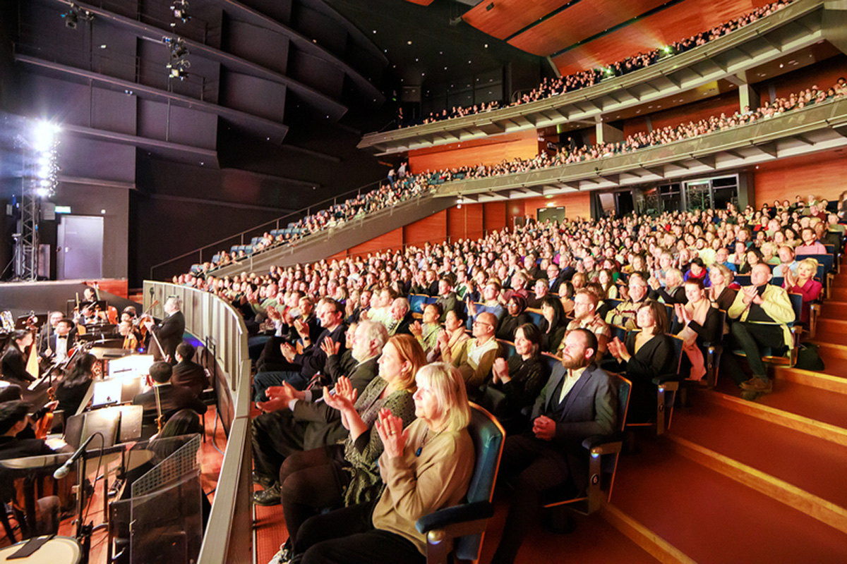 图2:二零二二年三月二十五日至二十九日,美国神韵环球艺术团在加拿大密西沙加表演艺术中心(Living Arts Centre)上演了五场演出。图为二十九日演出爆满的盛况。(大纪元)