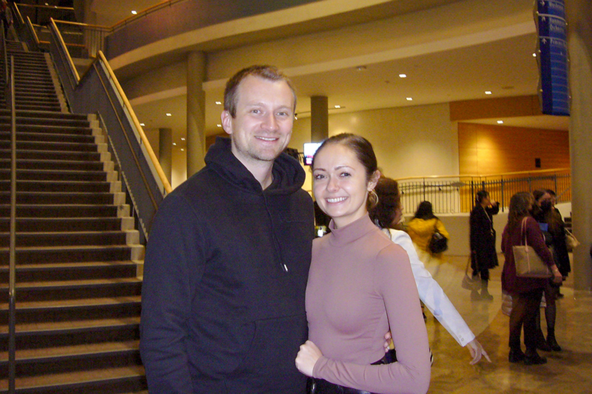 图11:二零二二年三月二十九日晚,LCH地产开发公司总经理米歇尔·维沃特(Michal Wywrot)与未婚妻一起观看了神韵环球艺术团在密西沙加表演艺术中心(Living Arts Centre)的演出。(大纪元)