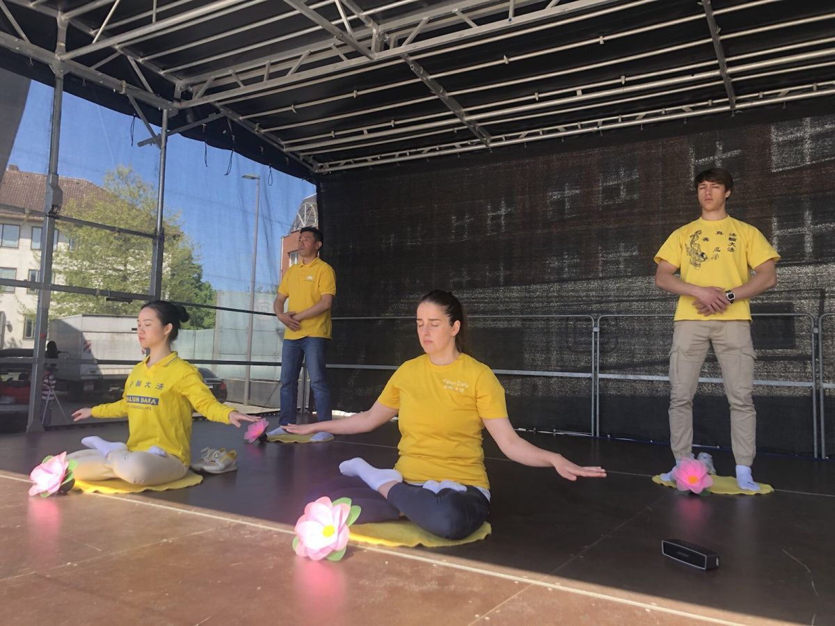 迫害刚刚开始后,几位老学员每周都去杜塞尔多夫或周边的城市讲真相。不少德国当地人是都通过几位老同修对法轮功有了一些了解。渐渐地,从最初一个小小的学法小组中发展出了科隆、杜塞尔多夫和几个周边城市的学法小组。目前,杜赛尔多夫学员每周举办三次信息点。一次在中领馆前,两次在市中心。