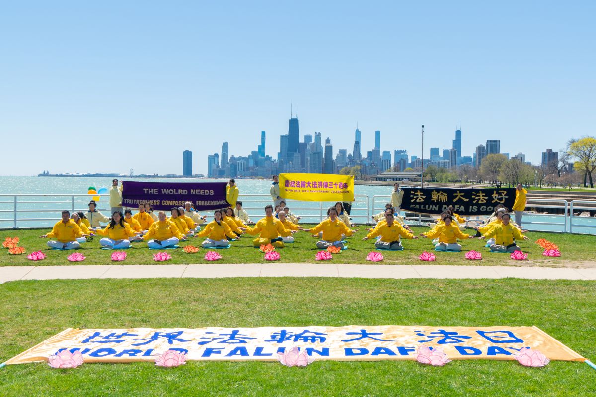 芝加哥法轮功学员谢师恩 庆祝大法弘传三十周年
