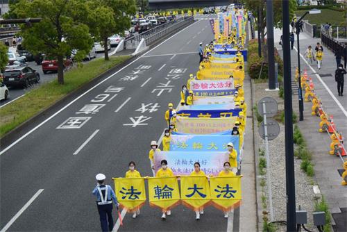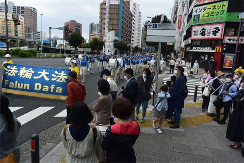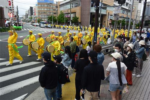炼功队在游行的出发地樱木町站前广场做了功法演示,明慧学校的大法小弟子们为师父送上了生日祝福。