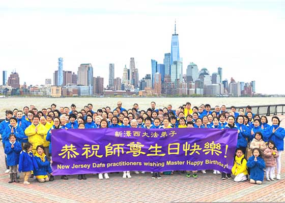 新泽西州的部分法轮功学员五月八日在同纽约曼哈顿隔河相望的码头公园,庆祝法轮大法洪传世界三十周年,共同表达对师尊的无限感恩。
