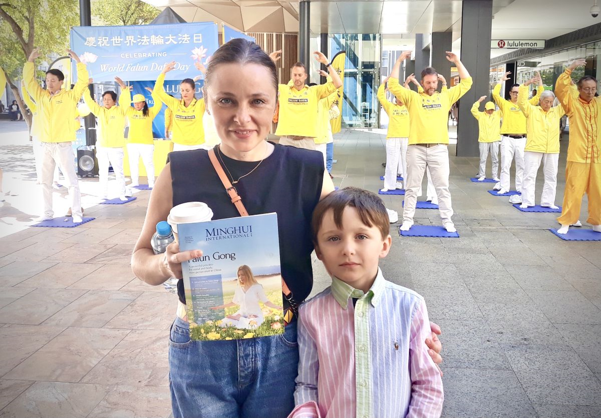 杰尼亚(Jenia)带着儿子观看了法轮功学员的表演,她说:“整个活动很美丽,很吸引人,色彩丰富。我们观看了表演,我的儿子很喜欢看。我以前在这里也见过法轮功的展位。”