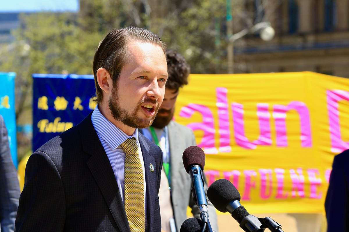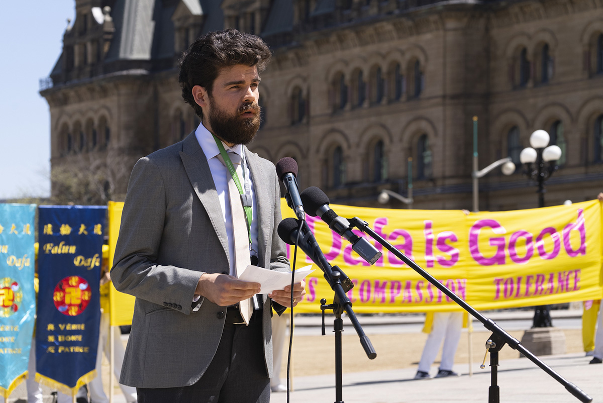图10:国会法轮功之友联合主席吉尼斯(Garnett Genuis)议员是打击活摘器官的法案的积极倡导者和推动者,他说:“15 年来,议会成员一直在努力做到这一点。但我认为,第44届议会最终将完成(S-223)立法任务。我们背后有动力。”