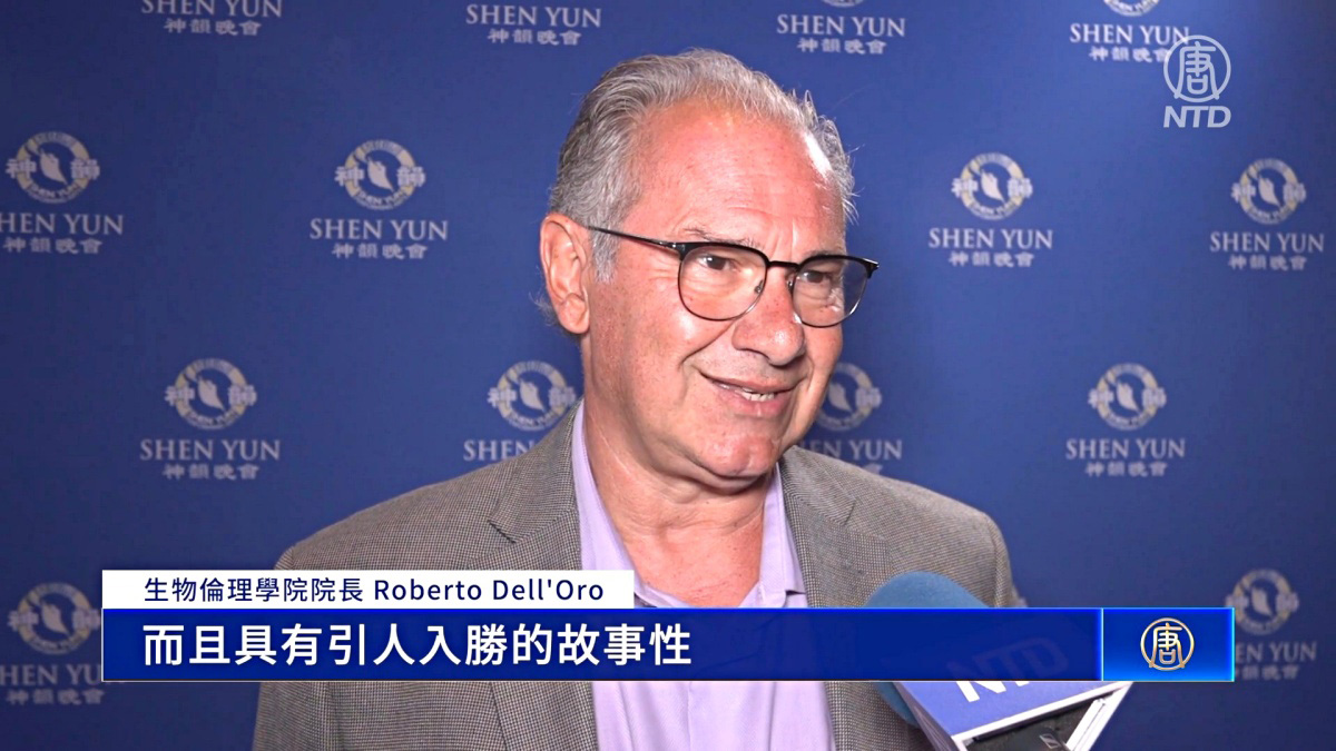 图19:美国生物伦理学院院长罗伯托‧德拉奥罗(Roberto Dell’Oro)观赏神韵演出后,赞叹神韵“无以伦比”。(新唐人电视台)