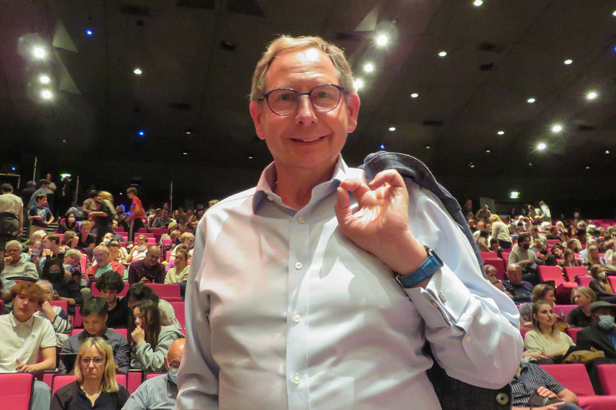 图18:二零二二年五月六日,获奖作曲家莱纳‧巴尔特斯(Rainer Bartesch)观看了美国神韵世界艺术团在菲森新天鹅堡音乐厅(Festspielhaus Neuschwanstein)的第二场演出。(新唐人电视台)