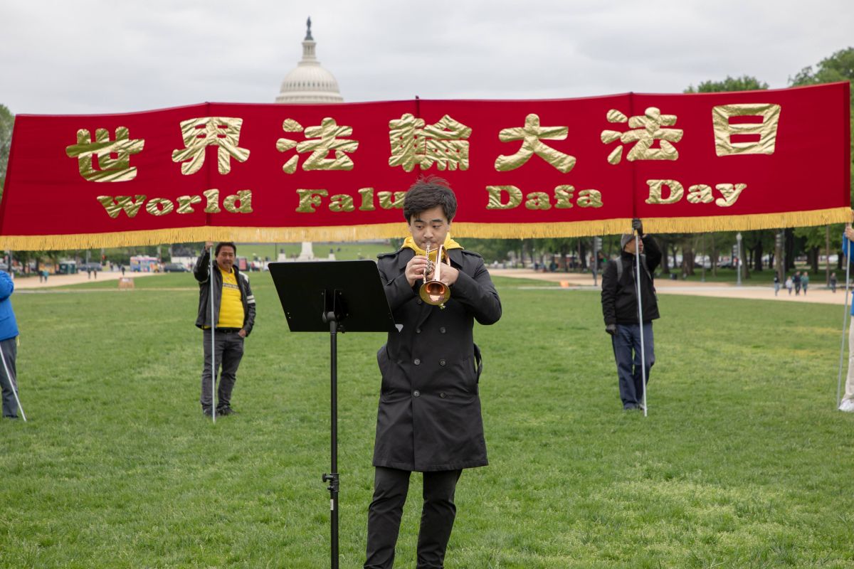 ![]() 图1:二零二二年五月八日,大华府地区部分法轮功学员在国家广场庆祝世界法轮大法日,恭祝李洪志师父生日快乐。 |