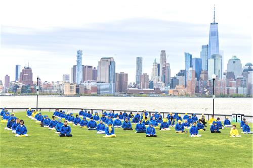![]() 图1:美国新泽西州部分法轮功学员聚集在霍伯根市的码头公园(Pier APark)恭祝师尊生日快乐。 |
