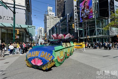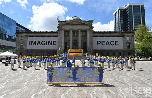 【明慧网二零二二年五月十二日】(明慧温哥华记者站)二零二二年五月八日,温哥华地区部分法轮功学员在温哥华市中心艺术馆北侧庆祝法轮大法弘传世界三十周年,当天大约有二百多名法轮功学员参加了集会,之后他们举行了游行活动,游行路线经过温哥华市中心主要街道及五帆酒店等地标建筑,吸引大批民众观看。