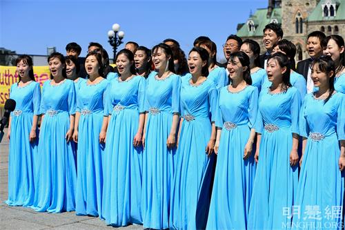 图1-6:2022年5月10日,来自加拿大东部部分法轮功学员数百人汇聚在首都渥太华国会山前,庆祝法轮大法洪传三十周年。
