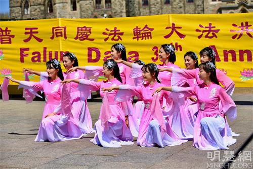 当日,法轮功学员以天国乐团游行、歌舞等方式庆祝法轮大法洪传世界三十周年。法轮大法日庆祝期间,加拿大各级政要再度为法轮大法发出贺信和褒奖。