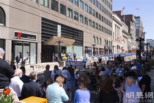 图6~8:2022年5月10日,来自加拿大东部部分法轮功学员汇聚在首都渥太华国会山前,庆祝法轮大法弘传三十周年。图为法轮功学员在市中心步行街遊行。
