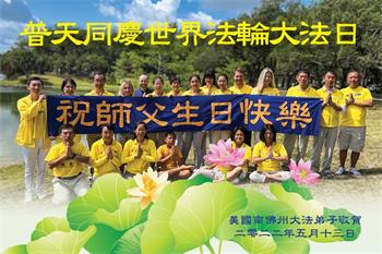 美国华盛顿DC、新英格兰地区、佛蒙特、佛罗里达、费城、新泽西、北卡、弗吉尼亚、亚特兰大、麻州大法弟子恭贺师尊华诞!庆贺世界法轮大法日!