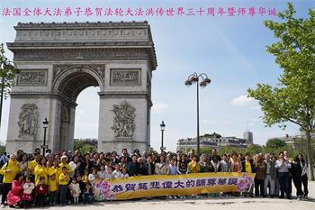 德国、法国、荷兰、奥地利、英国、爱尔兰、瑞士大法弟子携家人和明白真相的世人恭贺世界法轮大法日暨师尊华诞!